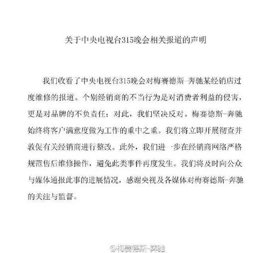 梅赛德斯奔驰微博截图