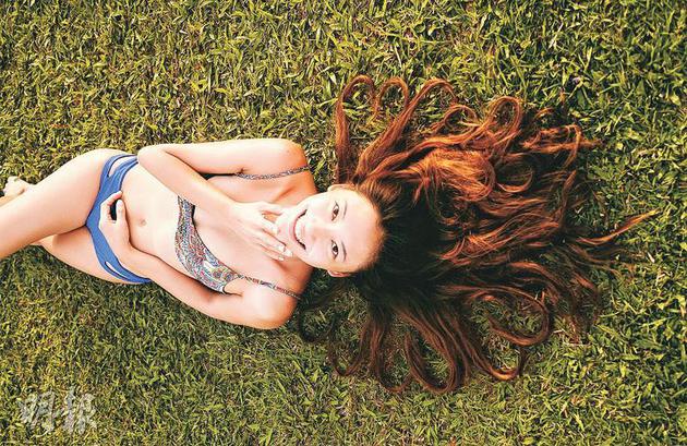 应采儿穿着三点式泳衣