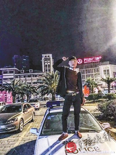 重庆晚报讯 车展上,有女模坐在豪车上让人拍照,可你见过半夜三更踩在警车上让人拍照的吗?这不,2月6日晚,万州一小伙不仅踩在警车上让人拍照,还求转发,求点赞(如图)。