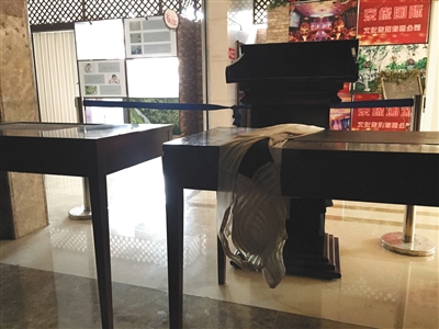 1月16日,北京京仪大酒店一层通往丽海名媛俱乐部的下沉楼梯被桌子拦住。