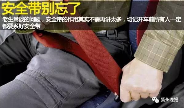 上路前的第一件事就是系安全带,作为一个老生常谈的问题,安全带的作用其实不需再讲太多,大部分车主都知道。可能有人问,为什么现实中还这么多人对安全带不以为然呢?我想最根本的原因是事故没发生自己身上。切记,开车前所有人一定都要系好安全带。