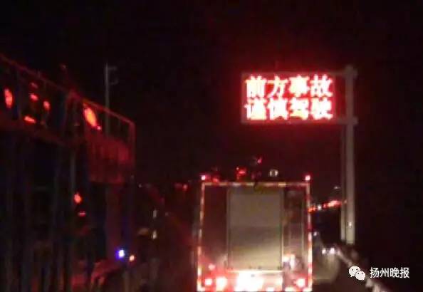 事故发生在京沪高速扬州境内江都段与高邮段交会处附近