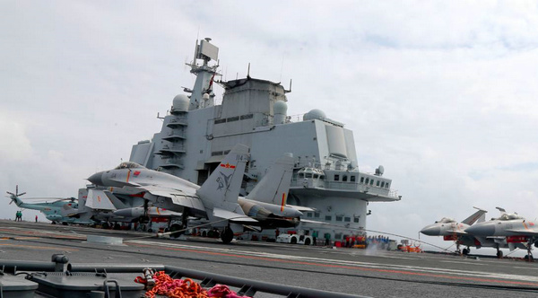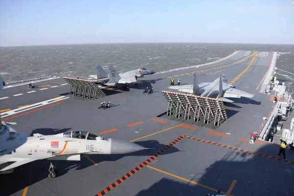 12月15日,海军组织实施了航母编队实际使用武器演习。演习在渤海某海域展开,共动用辽宁舰等各型舰艇数十艘、飞机数十架,发射空对空、空对舰和舰对空等多型多枚导弹。