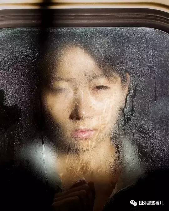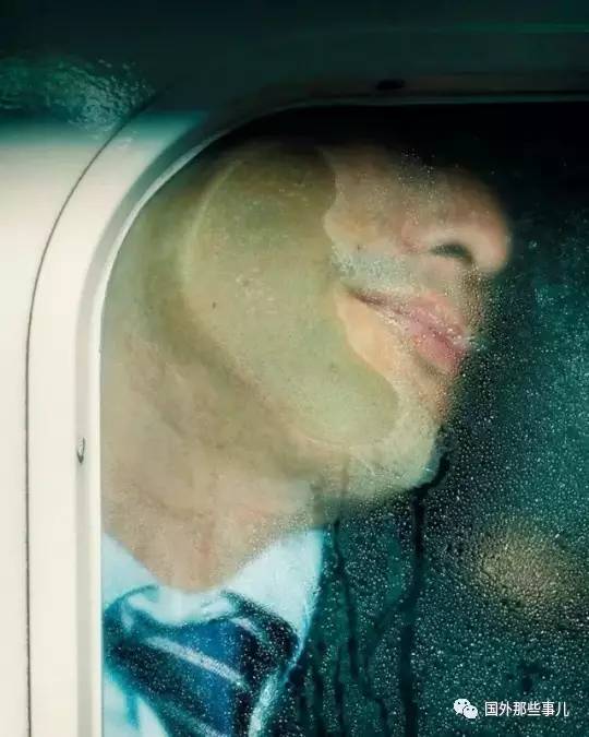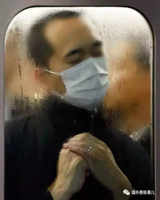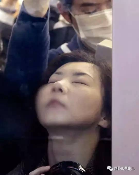 上图这位挤地铁的女生,被压在地铁玻璃上,可能挤地铁太累了,闭着眼睛休息一下。