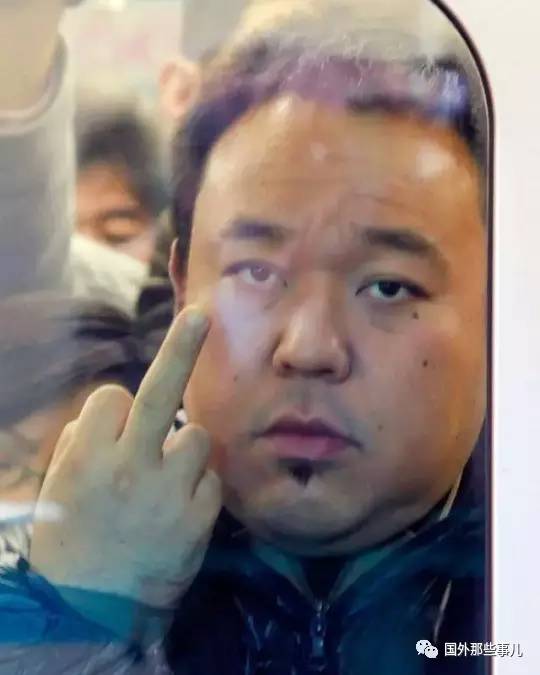 这位男子看起来对摄影师拍他很是不满,竖起了中指回应。