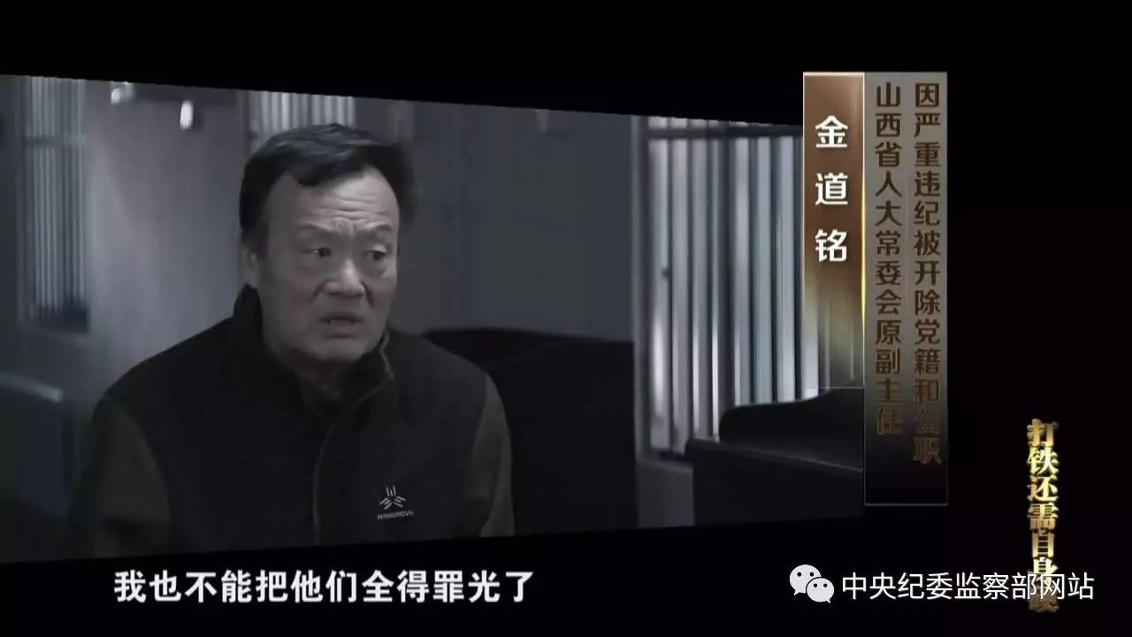 金道铭(山西省人大常委会原副主任):一亿两千三百多万,我听了太害怕了,我太震惊了,我做梦我没那么大胆子,我要这么多钱。这样的问题也不是别人强拉硬拽的,是自己一步一步走到现在这样一个地步的。内因呢是什么,还是就是骨子里有贪欲,金钱物质对自己还是,骨子里边觉得还是好东西。商品的诱惑,实际上就是这个。根本不值得,根本它就不值得。