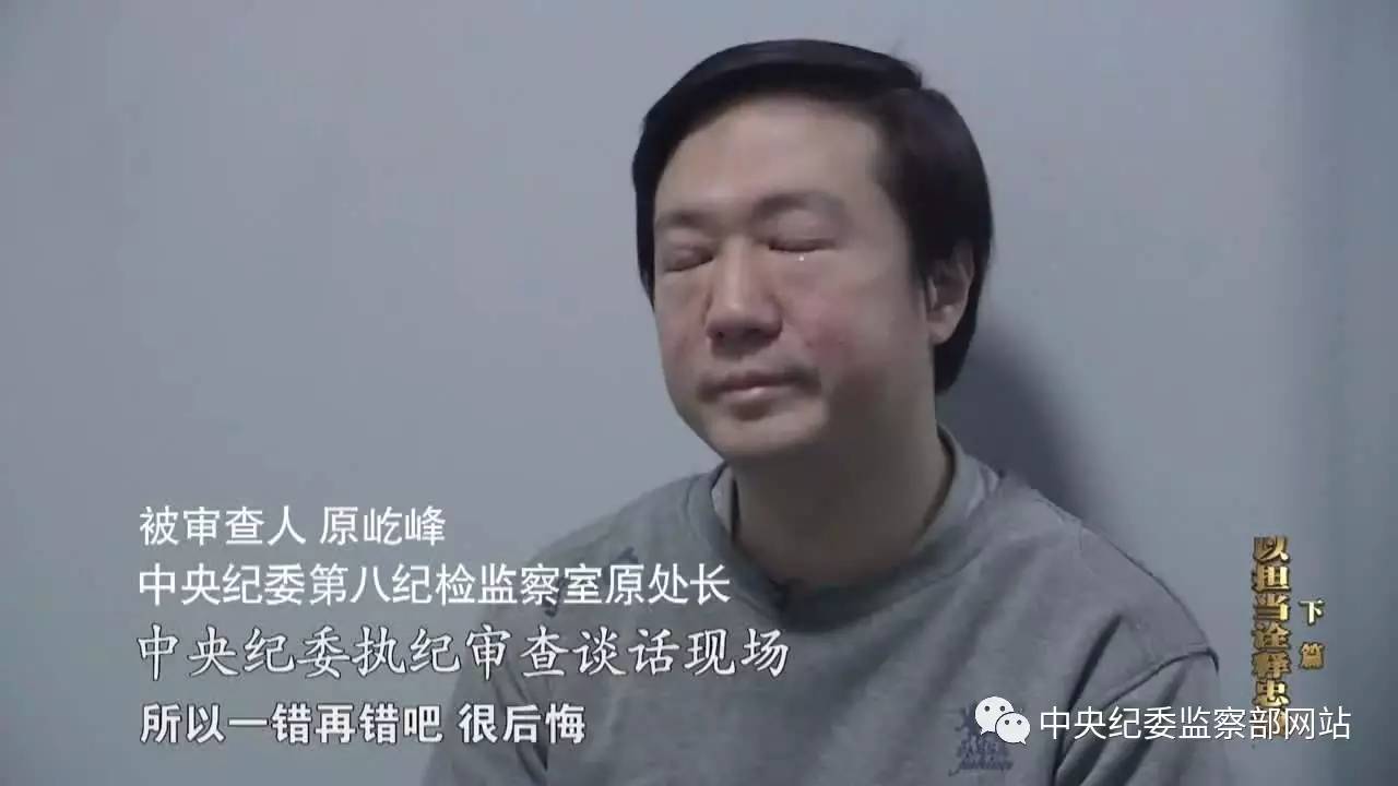原屹峰(中央纪委第八纪检监察室原处长):因为我一直在搞执纪工作,也知道发生的一些错误应该依靠组织,相信组织,把自己交给组织,但自己反而怀疑、躲避甚至对抗,其实是罪加一等,说到底还是对组织不忠诚、不老实,背叛组织。
