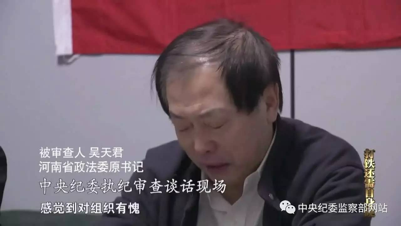 吴天君:感觉到对组织有愧,把人生目标,把享乐作人生目标,改变了人生方向,世界观、人生观、价值观的改变,让我看待周边的事物也在变化,把过去一切为了党的事业,按党的规矩办事,思考问题、谋划工作,变成了以自己为中心,考虑对自己的前途,考虑对家庭、孩子有利没利。三观的蜕变,自己思维方式、行为方式的变化,成了我犯罪一切的根源。