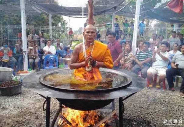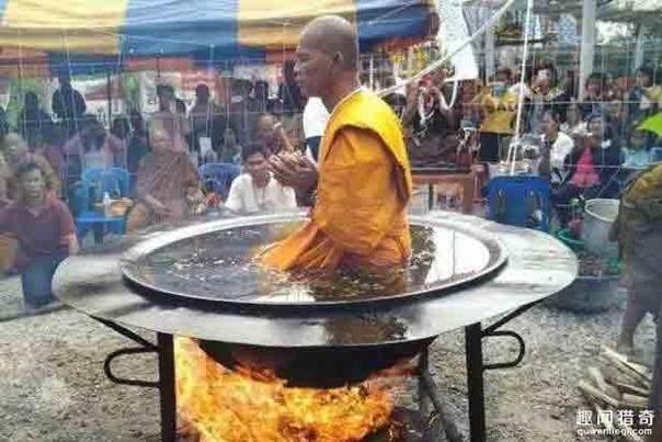泰国僧人当众表演“下油锅”神情自若