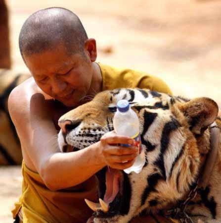 在前段时间也有报道曝出,泰国僧人能驯服猛兽老虎。他们表示,老虎之所以这么温和,也是受到了他们的感化,但是具体真相也不得而知。