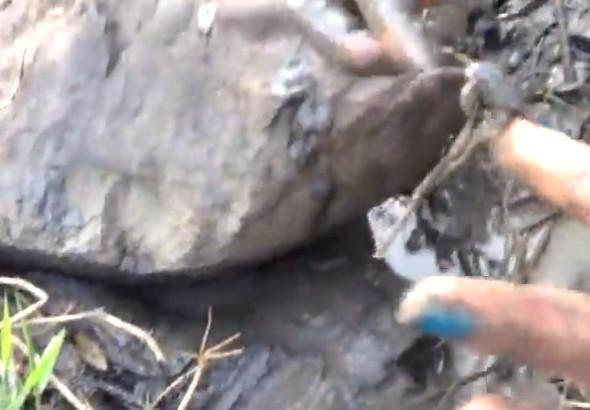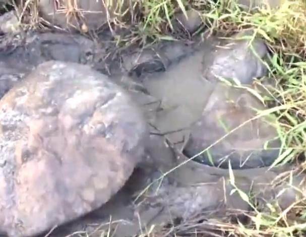 农村李大姐在河边捕捞了几个小时都没有收获,在休息的时候发现旁边的石头动了几下。