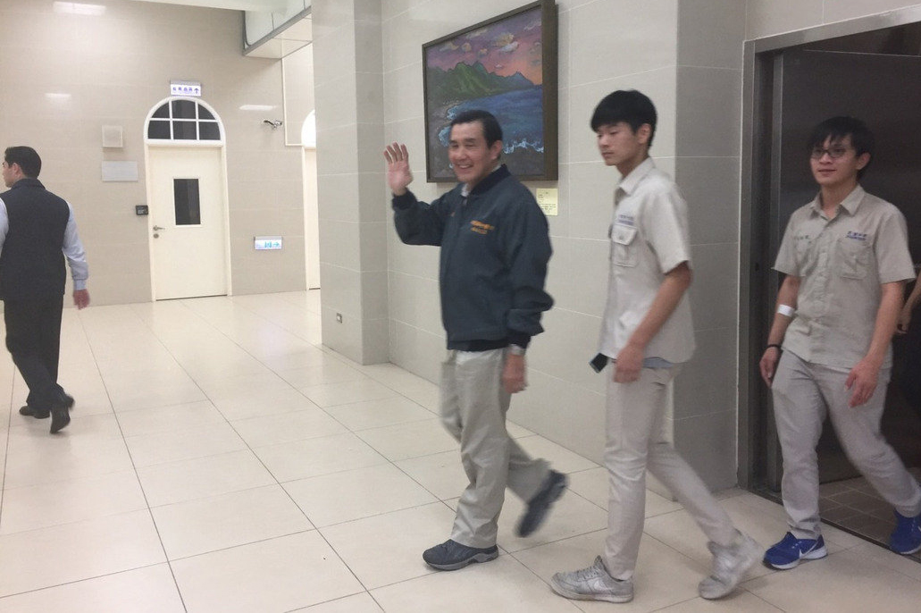 马英九26日下午重回母校,与学弟学妹分享他在自己的学生岁月,并回应,陈水扁的保外就医是根据“法律”、参考医生决定,“不是我的个人恩惠”。(图片来源:台湾《联合报》)