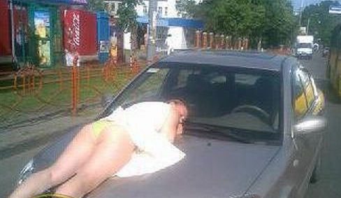 据了解,美女被撞之后身体并无大碍,但她却睡倒在车子上,无论车主怎么劝阻,她都不肯起来,并称自己很痛,要求车主赔偿损失。