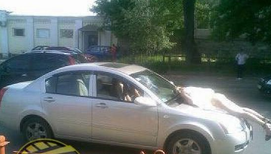 图示,这名美女被撞之后,直接躺在了车子的引擎盖上,躺着上面一动也不动,围观的路人都看得瞠目结舌。