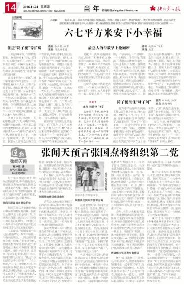 本文摘自:《快乐老人报》2016年11月24日14版,作者:程中原,原题为:《张闻天预言张国焘将组织第二党》