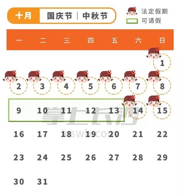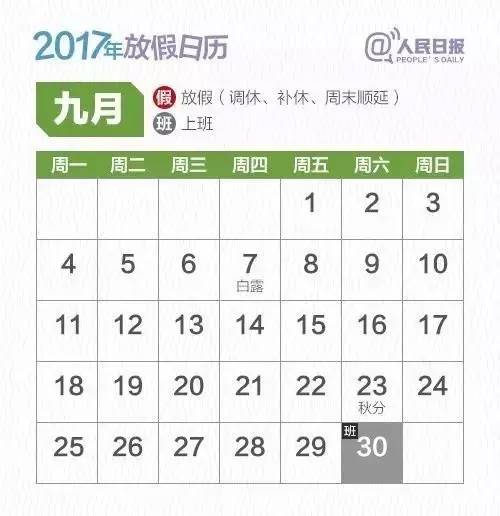 法定:2017年10月1日至10月8日,中秋节和国庆节重合,共8天