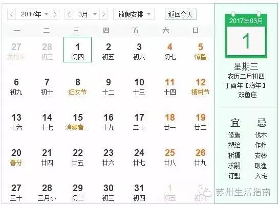法定:2017年4月29日至5月1日为劳动节,共3天