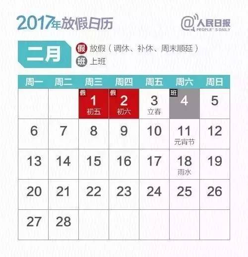 法定:2017年1月27日至2月2日为法定春节,其中1月份5天