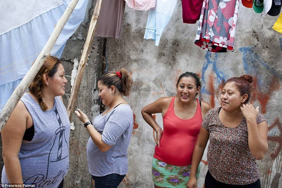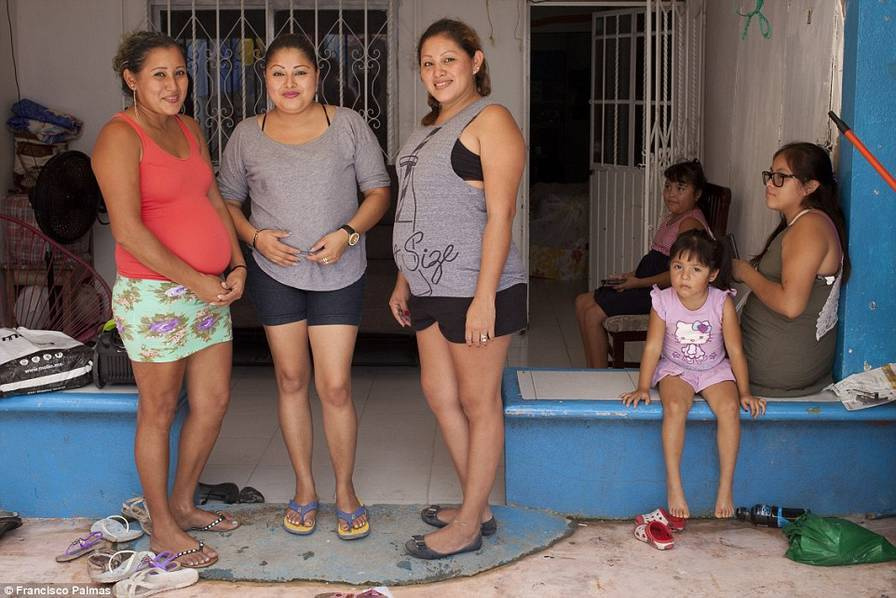 墨西哥贫困州塔巴斯科,家住赫尔南德斯的四姐妹从事“代孕”工作。这个四姐妹之间最初是30岁的大姐Milagros成为了代孕者,她已经为3个不同的男人成功地生了孩子。第一个孩子使她获得了将近10万人民币的收入后,剩下的3个妹妹也都跟着姐姐一起,成为了专业代孕者。图为四姐妹站在晾衣架下,由于怀有代孕的婴儿,她们的肚皮微微隆起。