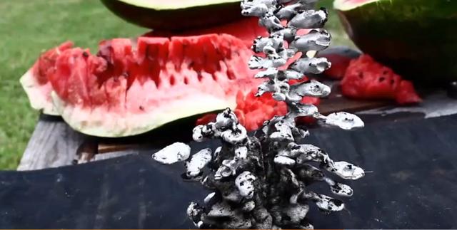 国外一名男子和女友做了一个科技趣闻奇葩的实验,男子将滚烫的铝水倒进西瓜里!结果太惊人了!