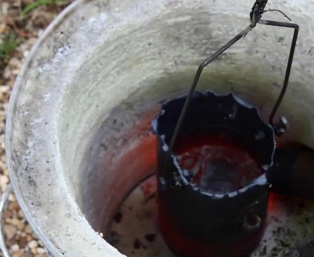 他们先准备好一个西瓜,用铁管在气管上钻了一个洞,最后将滚烫的铝水顺着吸管上的洞口倒进来
