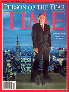 由此,朱利亚尼登上了2001年《时代》杂志的风云人物榜单,英国女王伊丽莎白二世授予他英帝国爵级司令勋章,并且使他获得“美国市长”的绰号。