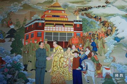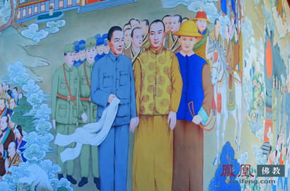 唐卡中的十世班禅与习仲勋在西安会面。图片来源:凤凰佛教 摄影:妙传
