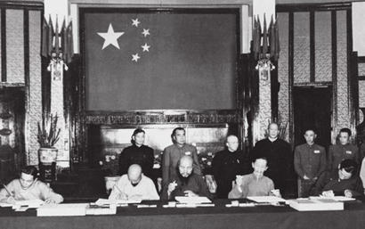 西藏地方政府5位全权代表在协议上签字。 图片来源:中国共产党历史网