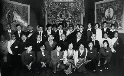 1988年3月29日,习仲勋(第二排右五)、阿沛.阿旺晋美(第二排右六)、第十世班禅(第二排右四)出席在民族文化宫举办的《藏族与祖国内地关系文物展览》开幕式。图片来源:中国西藏网