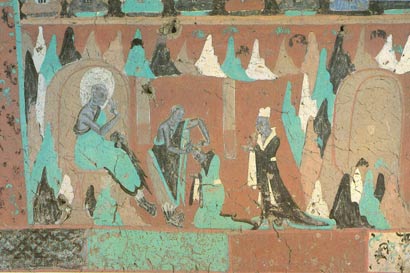 沙弥进走房里,先把房门关好,找出一把剃刀,脱下衣服放在架上,然后合掌跪下,面向拘尸那城