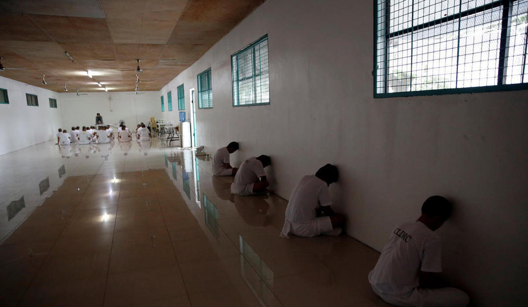 吸毒人员在面壁思过。目前菲律宾官方登记有70万名涉毒者,但该国戒毒设备有限。黄如论今年7月曾访问菲律宾会见了杜特尔特,黄如论承诺向菲律宾提供资助,以建设两所能够容纳1万名吸毒者的大规模戒毒中心。为建戒毒中心,计划从中国进口200多箱装满建筑材料的货柜,目前已进口90多箱。