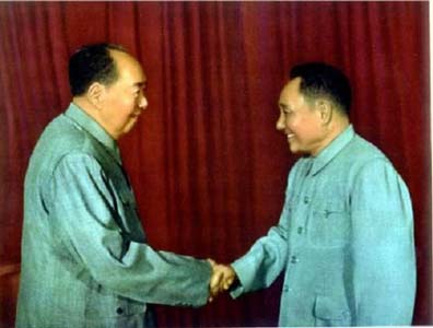 邓小平与毛泽东合影 资料图