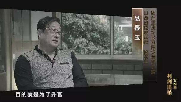 聂春玉(山西省委原常委、秘书长):说实在的,我是有从搞研究到当官的变化。作为主观上也就是思谋着,做了市长思谋着什么时候能做到书记,而且创造什么条件能够做到书记,做了书记思谋着怎么能够回到省里面当个副省级干部,目的就是为了升官。