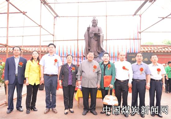 县政协、县委宣传部、统战部、教体局等领导和孔子圣像捐赠人,香港孔教学院院长汤恩佳夫妇及孔氏后裔合影留念。