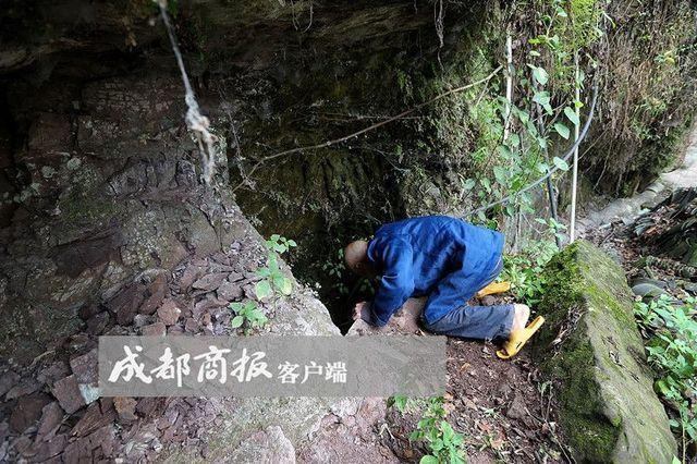 “硝洞”前方的石壁有一道石缝,常年有清澈泉水流出,这是老两口平时的生活用水。(记者:王超 摄影记者:张建) (来自:成都商报)