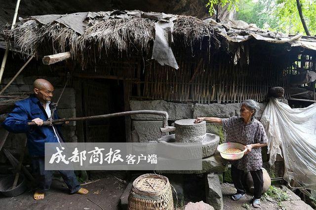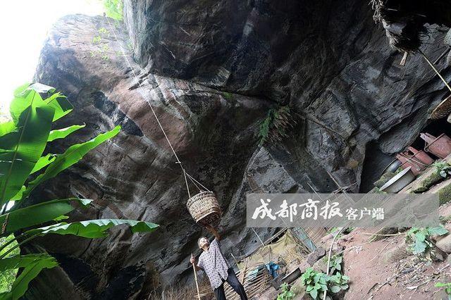 至今,梁自付仍在“硝洞”上方种有少量田土,每到收获季节,他就独自带着绳索和箩筐沿小路上山,之后将装满粮食的箩筐搬至?“硝洞”上方的峭壁边沿,用绳子系住箩筐顺着约20米高的悬崖峭壁慢慢往下放,老伴站在洞口就能接住箩筐并将粮食搬进屋内。这种搬运粮食的方式让老两口很开心,?“能省不少力呢”。(记者:王超 摄影记者:张建) (来自:成都商报)