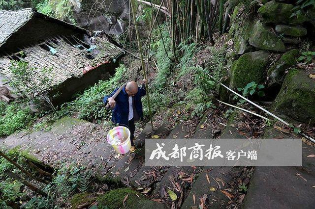 但近来泉水变小,无法满足家用,梁自付不得不去寺庙旁的水井挑水。(记者:王超 摄影记:张建) (来自:成都商报)