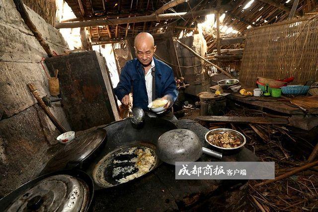 老汉在做饭。(记者:王超 摄影记者:张建) (来自:成都商报)