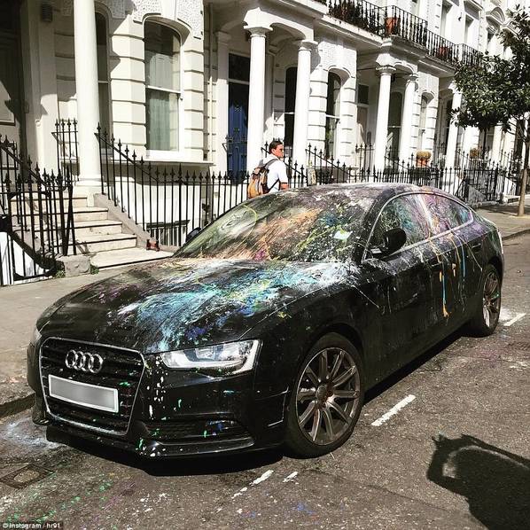 图为一辆车被喷漆。