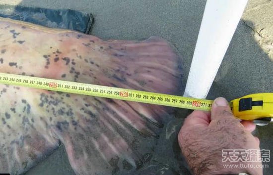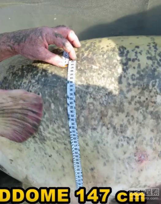 拍照完毕,测量一下重量和长度。体长达2.67米,体重127公斤。创下了使用鱼竿钓大鱼的新纪录。