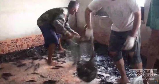 在家人的加入下,他们决定用盆子把这些小鱼先捞起来