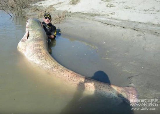 和这条鱼搏斗了好长时间,这条鱼精疲力尽后,终于现身了,是一条巨型鲶鱼,被欧洲人称为“食人怪”。