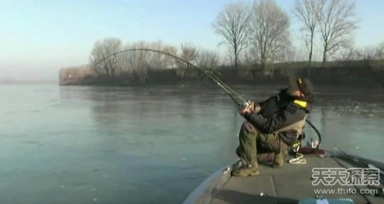一位意大利钓鱼爱好者像往常一样在意大利的Po河三角洲地区钓鱼。过了一会,他发现有一条鱼上钩了,他开始收线,发觉这次比以往要费力很多,从图片上就能看出,上半身直接向后倾。