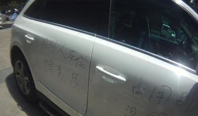 7月15日上午,渝北的李女士去准备驾车出门,走进自己的车子,发现自己的轿车被人喷上了字,车身左右两侧、前盖板全部写着“占用别人车位,没得素质”的大字。李女士向黄泥