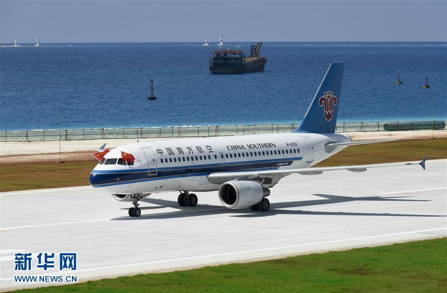 7月13日,南方航空公司的客机在美济礁新建机场着陆。