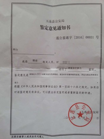 随后,新京报记者从五莲县公安局办公室处证实了该份鉴定意见通知书。