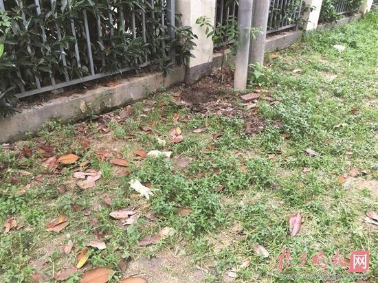 下午3点多,扬子晚报记者来到事发小区,事发房屋为该小区的一个车库,记者赶到时,车库的门紧锁,门口也没有警戒标志。一位大妈告诉扬子晚报记 者,尸体是从该幢房屋边、靠近围墙的那侧挖出来的。记者赶到时,地面已经经过处理,草皮已经重新盖上,不仔细看很难发现。走近后记者发现,在附近还有一副 已经被使用过的医用手套。