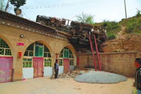 罐车从天而降砸中窑洞华商报讯(记者 祁铭)一声巨响过后,一个庞然大物重重地砸在了村民的窑洞顶上,米脂县郭兴庄镇田家沟村村民李辉傻眼了,转眼间,自家窑洞成了危窑,家中老小没了避风港。事到如今,半个月过去了,这辆罐车还悬在半空。据了解,这辆罐车是为该村水泥路施工运送混凝土的途中发生意外,水泥路修建是米脂县交通局负责。