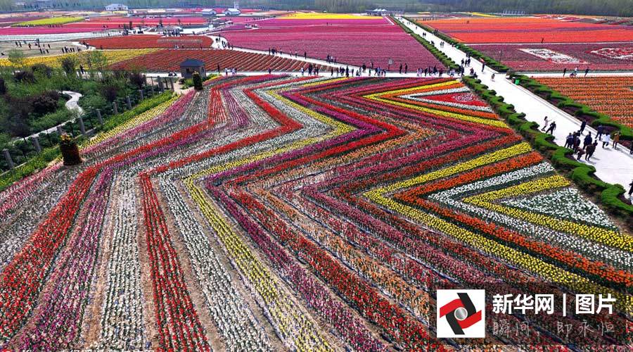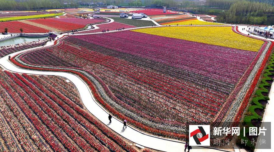 航拍河南驻马店千亩郁金香 “中原小荷兰”似油墨地毯