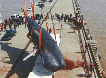 原标题:江苏搁浅抹香鲸 死前极其饥饿,但并非因胃里渔网丧命
